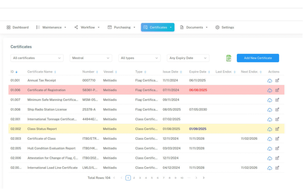 Upload and manage vessel certificates