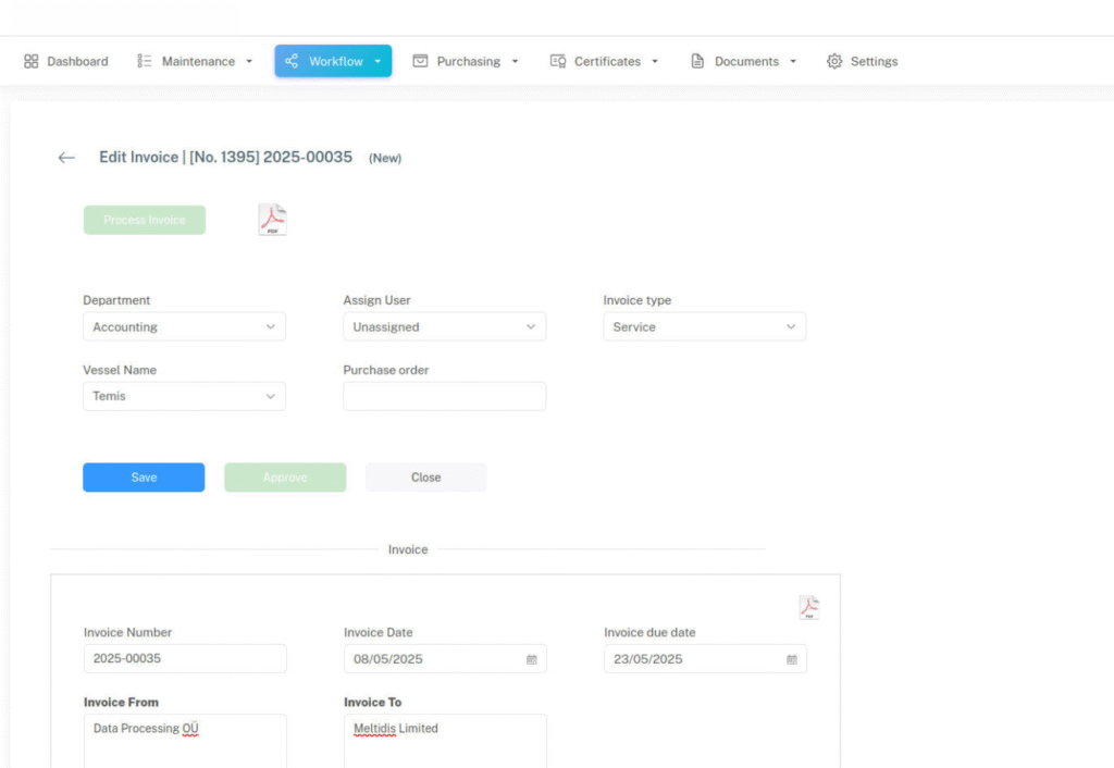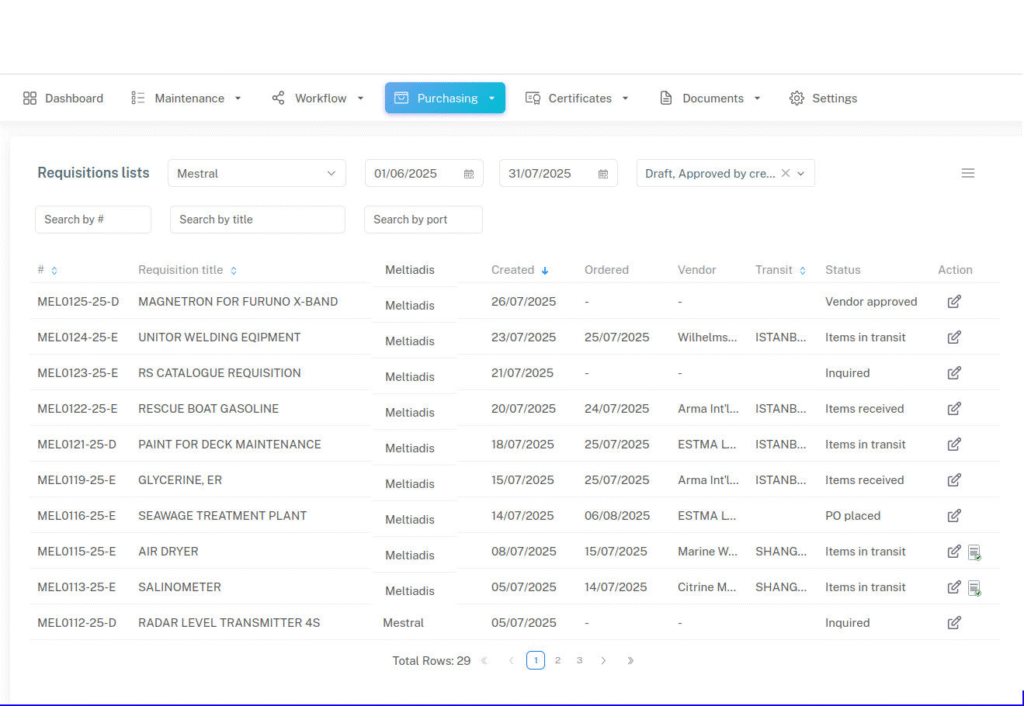 Streamline procurement with approvals, RFQs, and delivery tracking from shore to vessel.