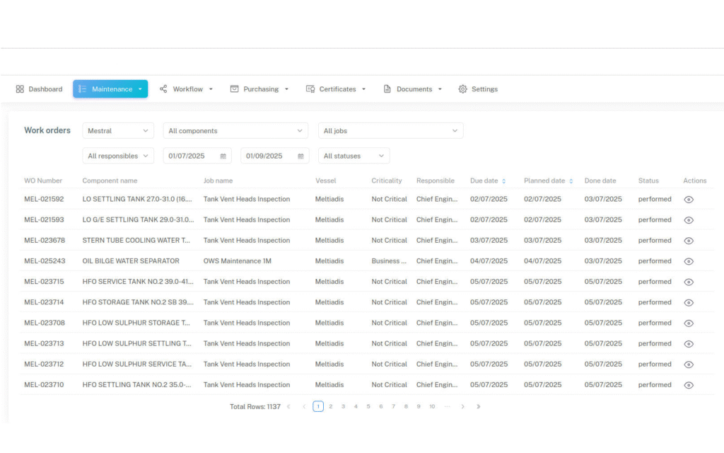 Plan, execute, and track maintenance across your fleet with offline-first workflows and shore-side visibility.